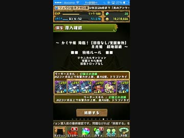 【パズドラ】かぐや姫降臨! 超地獄級 黒天の幻龍王・ゼローグ∞PT