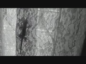 レースカーテンを登る やもり!!