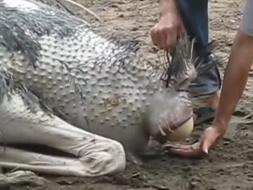 ダチョウの産卵シーン