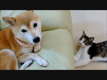 柴犬いちごと猫ミルキー 見過ぎで「なんでやねん!」