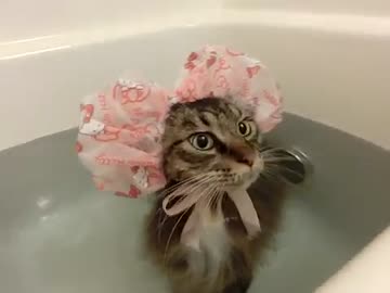 お風呂大好き猫きら氏☆おにゅ~のイヤーキャップ☆ルンルン風呂猫♨.mp4