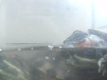 えさを食べるミドリガメ(スローモーション)