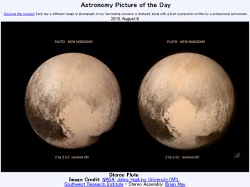 2015年 8月6日 「ステレオの冥王星」-Astronomy Picture of the Day