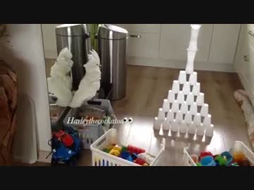 破壊!破壊!!破壊!!!カップタワーにブチ切れるオウムさん。