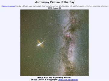 2015年 8月12日 「天の川と弾ける流星」-Astronomy Picture of the Day