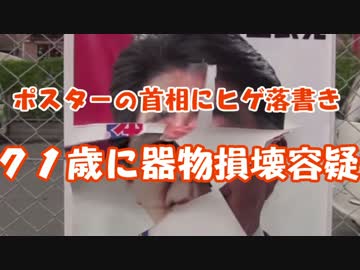 ポスターの首相にヒゲ落書き 71歳の男を逮捕!