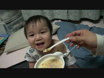 食事中に笑いが止まらないセンパチ(9か月)