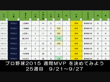 プロ野球2015 週間MVP を決めてみよう 26週目 9/21~9/27