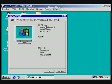 Neko Project 21(Neko Project Ⅱ SX)でWindows98(SE)を動かしてみた。