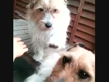 ライバルを手で押しのけながら「お手」をする一石二鳥なハイブリット犬