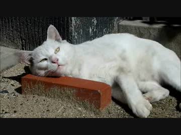 白淡レンガ枕にオネムだニャ!!
