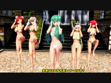 【MMD】咲夜・早苗・美鈴・妖夢・ここぁ「,ロマンスの途中」水着Ver