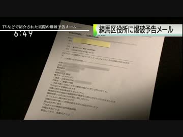 またまた練馬区役所に爆破予告(3回目)「覚悟しろナリ 全員ポアナリ」
