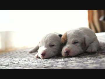 散歩中のお母さん犬の帰りを待つ生後15日の無力な子犬姉妹