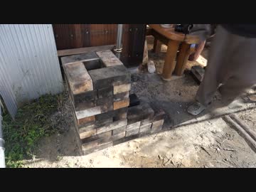 耐火レンガでロケットストーブを作る。