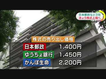 日本郵政と傘下2社 きょう株式上場へ