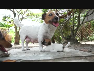 【母乳】生後22日の子犬たちの授乳~夏の昼下がりの木陰で休みながら