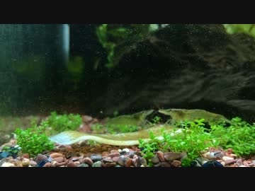 昆布をつまみ続けるミナミヌマエビ