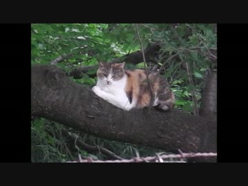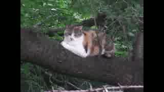 ネコは幹の上にいる