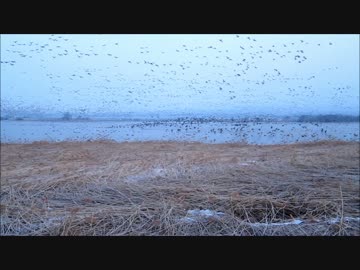 2011.04.15 04:43 宮島沼のマガンのねぐら立ち