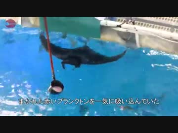 イトマキエイに餌やり 世界初のペア飼育、海遊館