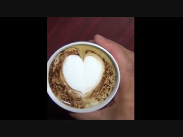 ラテアート練習 単純な形のものでもよく失敗する。