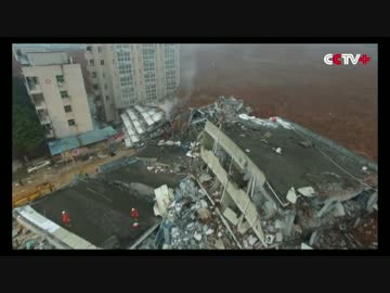 深圳人災土砂地滑り:ビル崩壊現場での救出活動をCCTVがドローンで撮影