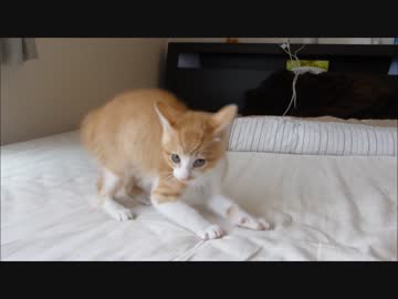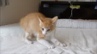 ルゥ君、ベッドの上でおおはしゃぎ&威嚇????