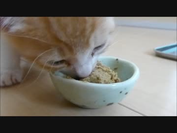 赤ちゃん猫、必死にご飯(離乳食)の練習中(=^・^=)
