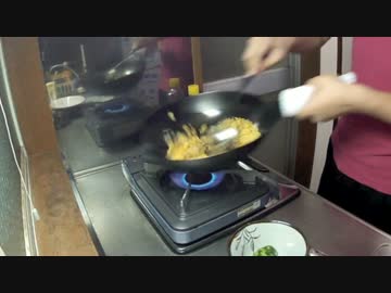 カセットコンロでチャーハン作るよ。