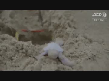 白いアオウミガメの赤ちゃん、いざ海へ オーストラリア