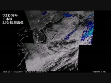【冬将軍】気象衛星ひまわり8号 日本域2.5分観測画像 - 2016.02.15