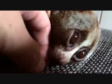 男の太い指を舐めて、うっとりするスローロリス