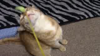 拾いねこ@生後1335/1302日目 寝起きにじゃらされるのかの実験。