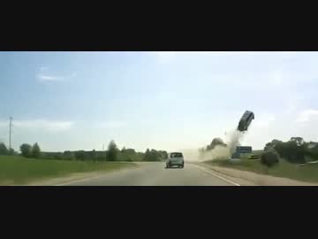 【衝撃事故映像】前を走る車がいきなり天高くぶっ飛んだ!【車載】