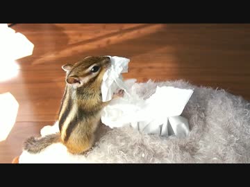 シマリスさんがティッシュを口に詰めているだけの動画