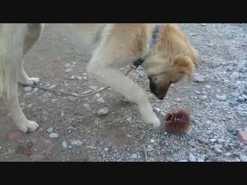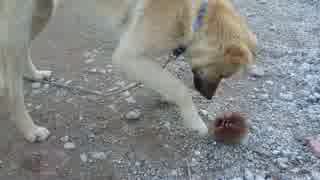 子犬VS栗 逆襲のイガ栗