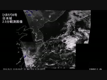 【桜咲く】気象衛星ひまわり8号 日本域2.5分観測画像 - 2016.03.21