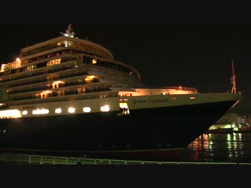 大阪港を出航する豪華客船クイーン・エリザベスとその乗客たち