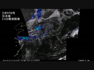 【桜咲く】気象衛星ひまわり8号 日本域2.5分観測画像 - 2016.03.29
