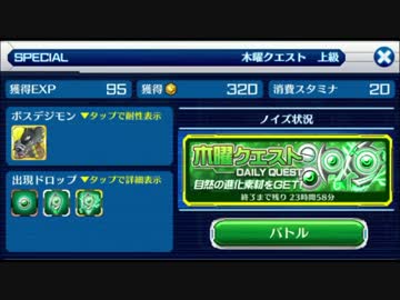 【デジモンリンクス】木曜クエ(自然進化素材) 上級 成熟期縛り
