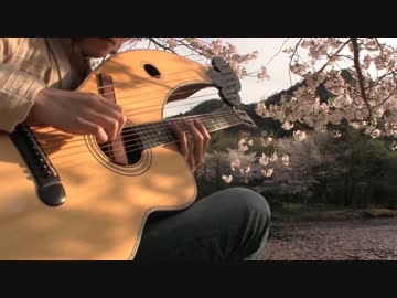 「桜坂」を桜の下でちょっと変なギター(ハープギター)で弾いてみた