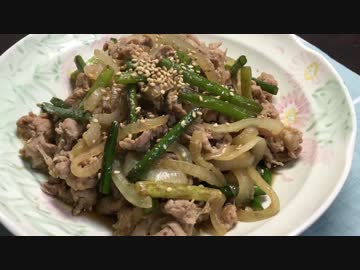 ニンニクの芽と豚肉のショウガ炒め!【簡単ぼっちめし】