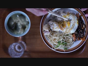 声のない音フェチ_咀嚼音_ひじきの炒め物、味噌汁、パスタ