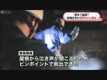 [熊本震度7] 益城町安永、倒壊住宅から赤ちゃん救出 4.15