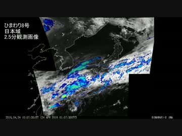 【桜前線北海道へ】気象衛星ひまわり8号 日本域2.5分観測画像 - 2016.04.24
