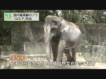 国内最高齢のゾウ 「はな子」死ぬ