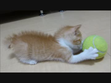 赤ちゃん猫、2度目のテニスボール対決 ⇒ 惨敗