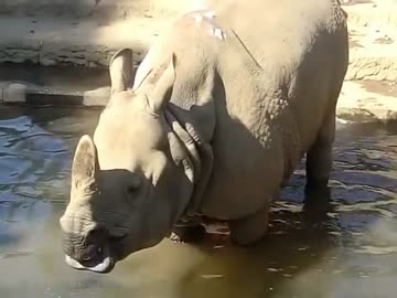 水に浸かるインドサイ(多摩動物園)
