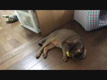 犬のオモチャたまごちゃんで遊ぶネコ